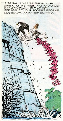 Plano medio para centrar la atención en el personaje víctima de una pedrada, por Dan Spliege para Captain Venture 1 (Gold Key, octubre de 1968).