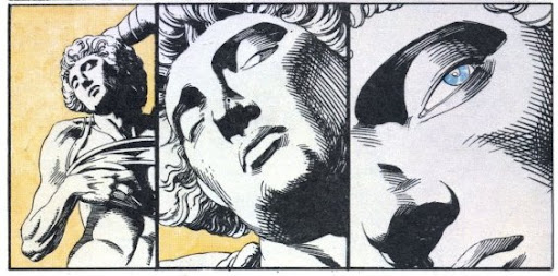 Susurros representados mediante globos de diálogo con los bordes de líneas discontinuas en esta viñeta de P. Craig Russell para Giant Size Master of Kung-Fu 1 (Marvel, junio de 1974).